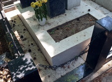 Так выглядело место захоронения на момент окончания работы: деревянный крест покрыт защитным раствором; мраморные изделия отшлифованы и покрыты гидрофобной субстанцией, стыки элементов промазаны белым герметиком; полые столбики, восстановлены; в цветнике заменена земля и посажен газон.